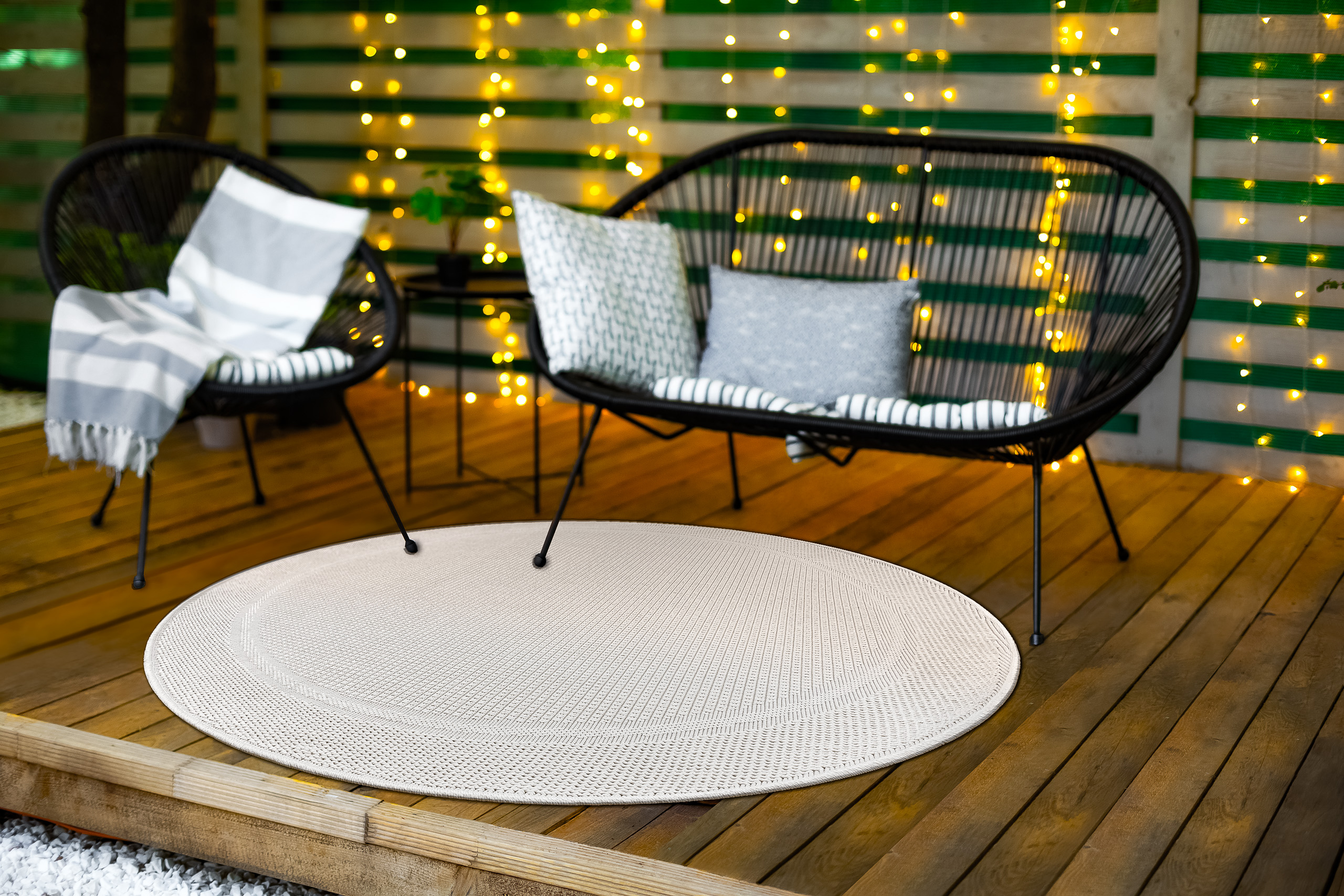 Carpet TIMO 5979 circle SISAL outdoor frame white - SECOND-RATE PRODUCT